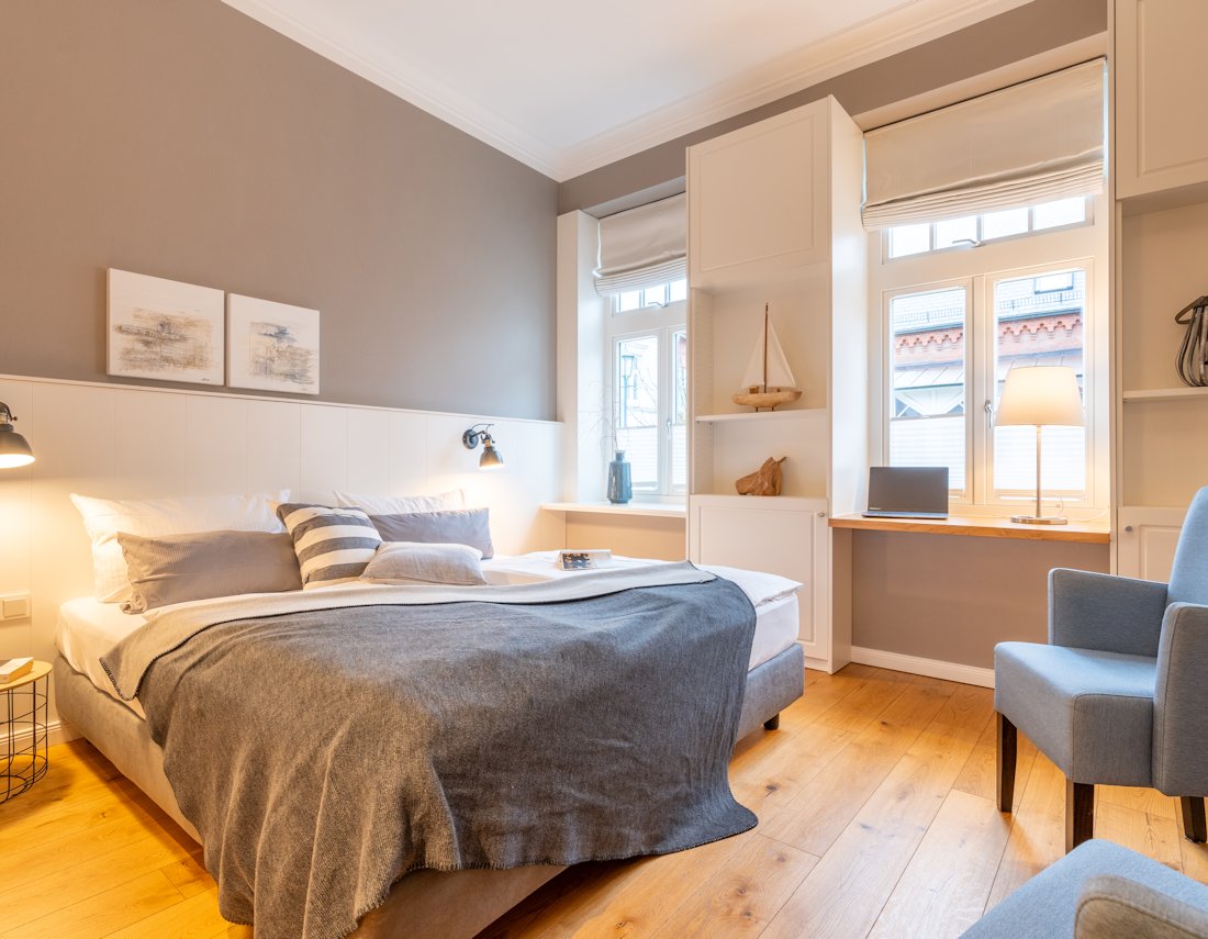 Ob Hochzeitsgäste oder Geburtstagsgesellschaft, Team oder Tagungsteilnehmende – manchmal ist es einfach nett und zugleich praktisch, alle unter einem Dach zu haben. Das Gästehaus Wilhelm ist dafür ideal geeignet. Aus guten Gründen: Die charmante Unterkunft liegt mitten im Borkumer Stadtkern, genau gegenüber vom Rathaus (in dem sich auch das Standesamt befindet). Hier genießen Sie die perfekte Balance aus Privatsphäre und dem Komfort des arthotel bakkers, dessen Haupthaus nur wenige Schritte entfernt liegt. In 11 Doppel- und 3 Einzelzimmern finden bis zu 25 Personen bequem Platz. Und nicht nur die: Drei Zimmer im Erdgeschoss sind „Hunde-Willkommen-Zimmer“, so dass auch vierbeinige Hochzeits-, Geburtstags- oder Tagungsgäste ein gemütliches Plätzchen unter dem gemeinsamen Dach finden.